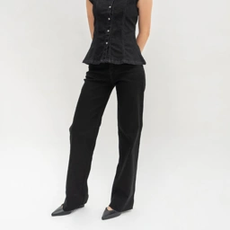 This jeans feature a clean straight cut that subtly flares into a timeless bootcut silhouette. The unfinished bottom adds a contemporary edge, giving just the right amount of character while keeping the look refined.
