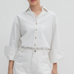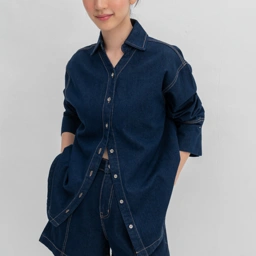 Designed with bold proportions and clean tailoring, this oversized denim shirt-jacket brings structure with ease. Featuring a sharp collar, defined seams, and roomy sleeves, it layers effortlessly or stands alone as a statement.