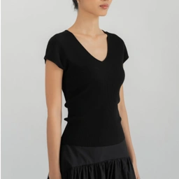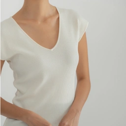 The Nira V-Neck Knit is a wardrobe staple redefined with soft ribbed texture and a sculpting silhouette that flatters with ease. The deep V neckline adds a refined touch, perfect for dressing up or down. (cm