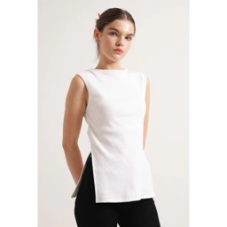 Long-torso top crafted in 100% cotton rib knit. Featuring side slits for an improved silhouette.