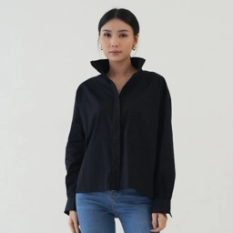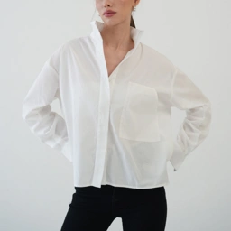 Poplin shirt with high neck collar, detailed with a chest pocket and concealed placket.