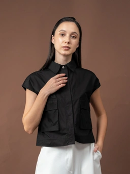 Ruel Pocket Shirt - featuring short sleeves with a crisp collar, concealed front placket, and dual flap pockets that add a utilitarian edge.