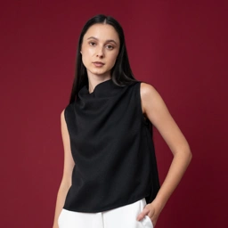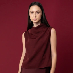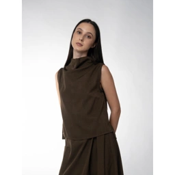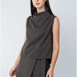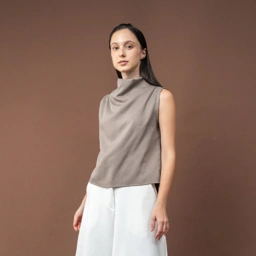 Nirae top - tailored from a smooth wool blend that holds its shape while offering effortless comfort. Featuring a sculpted high neckline with a gentle drape, clean sleeveless cut, and side slit detailing for ease of movement.