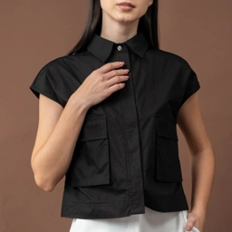 Ruel Pocket Shirt - featuring short sleeves with a crisp collar, concealed front placket, and dual flap pockets that add a utilitarian edge.