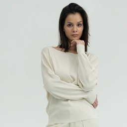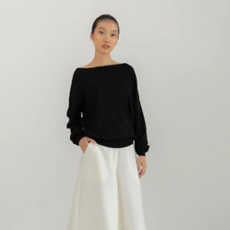 Designed with a subtle boat neckline that grazes the collarbone, this knit sweater balances softness and structure in all the right ways.