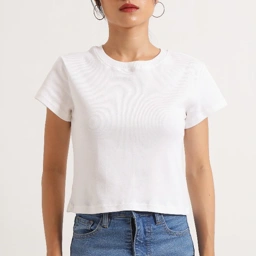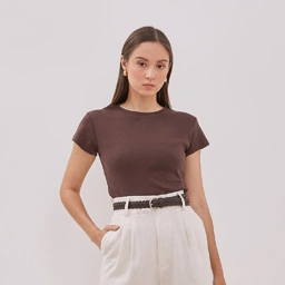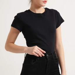100% Cotton tee with fitted cut. Detailed with small rib neckline.